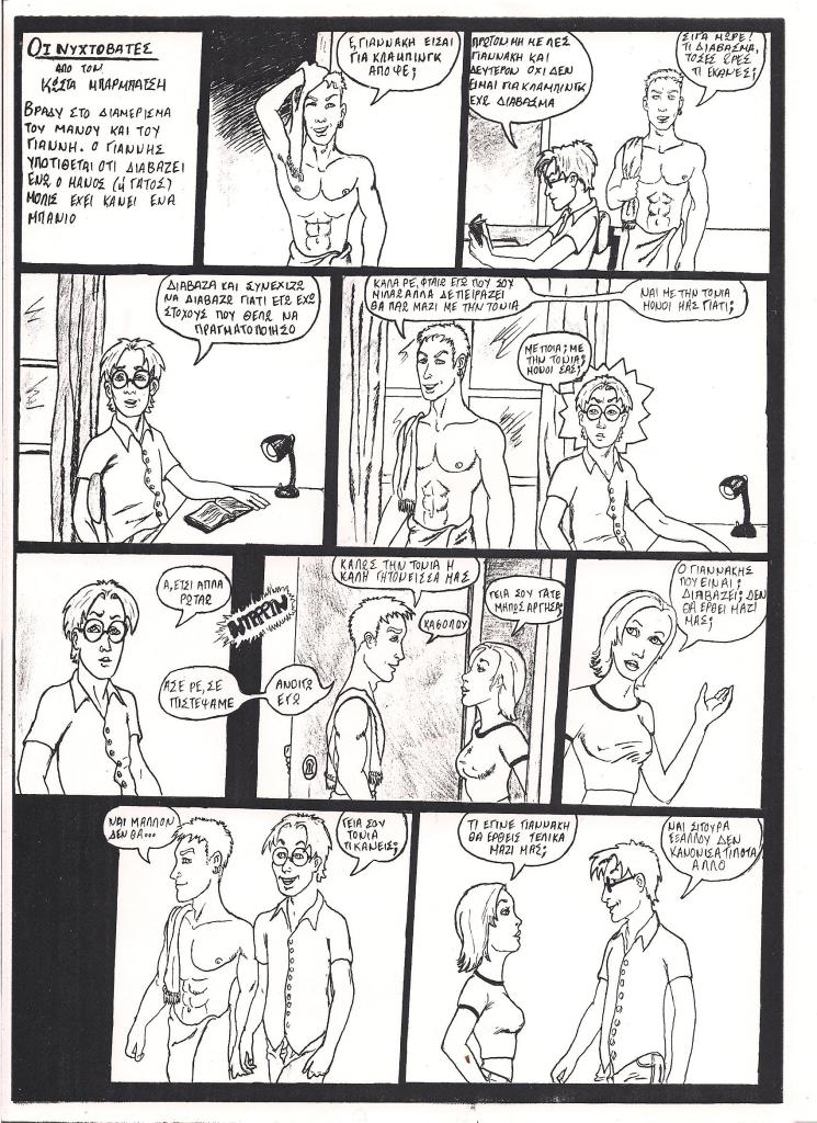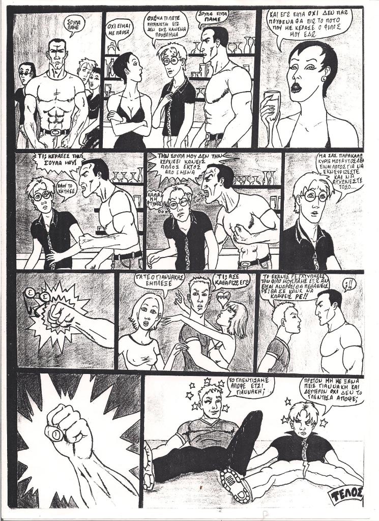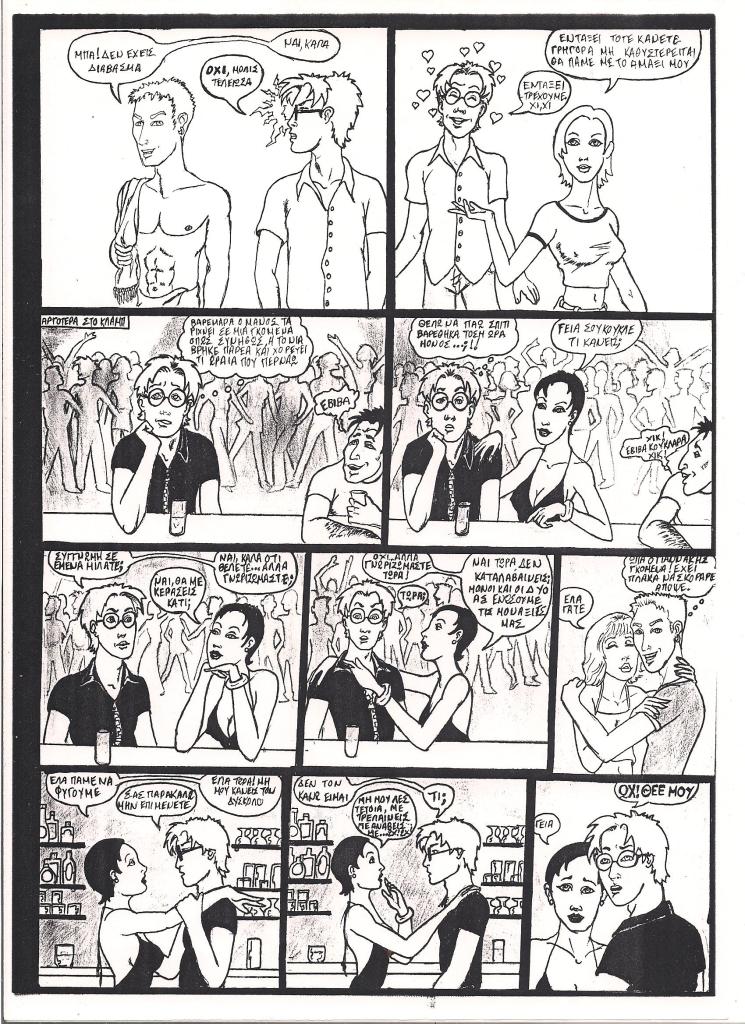 This three page story was published in a fanzine which its theme was about music from the dance scene in the late 90s ie. fazz, techno, house, progressive trance, etc. and it is in Greek.