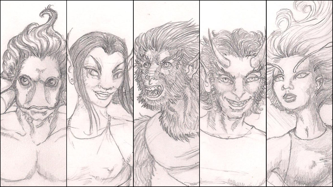 One of my characters is called Cerberus, named after the beast that guarded the gates of the Underworld in Greek myth. He is the one who looks like a werewolf.